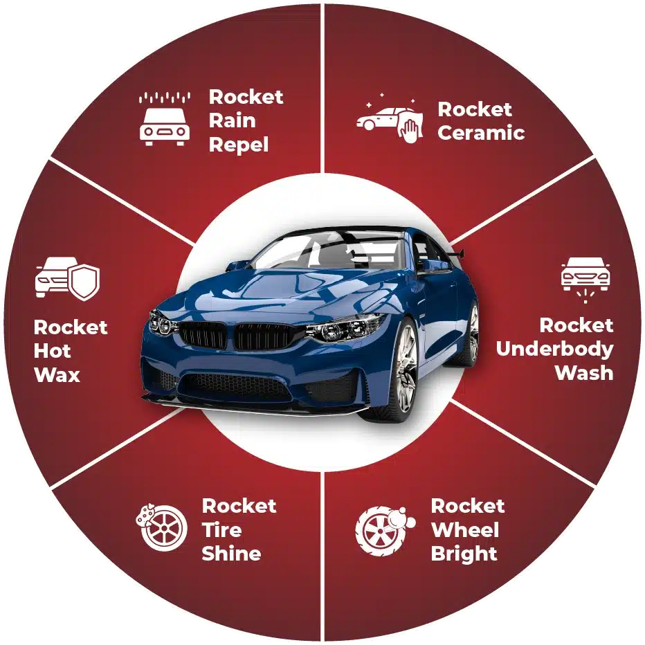 How do we achieve the trademark Rocket clean? With advanced drive-thru car wash technology and superior cleaning materials, our express wash offers unmatched convenience and quality to give you that quick clean car feeling every time.
